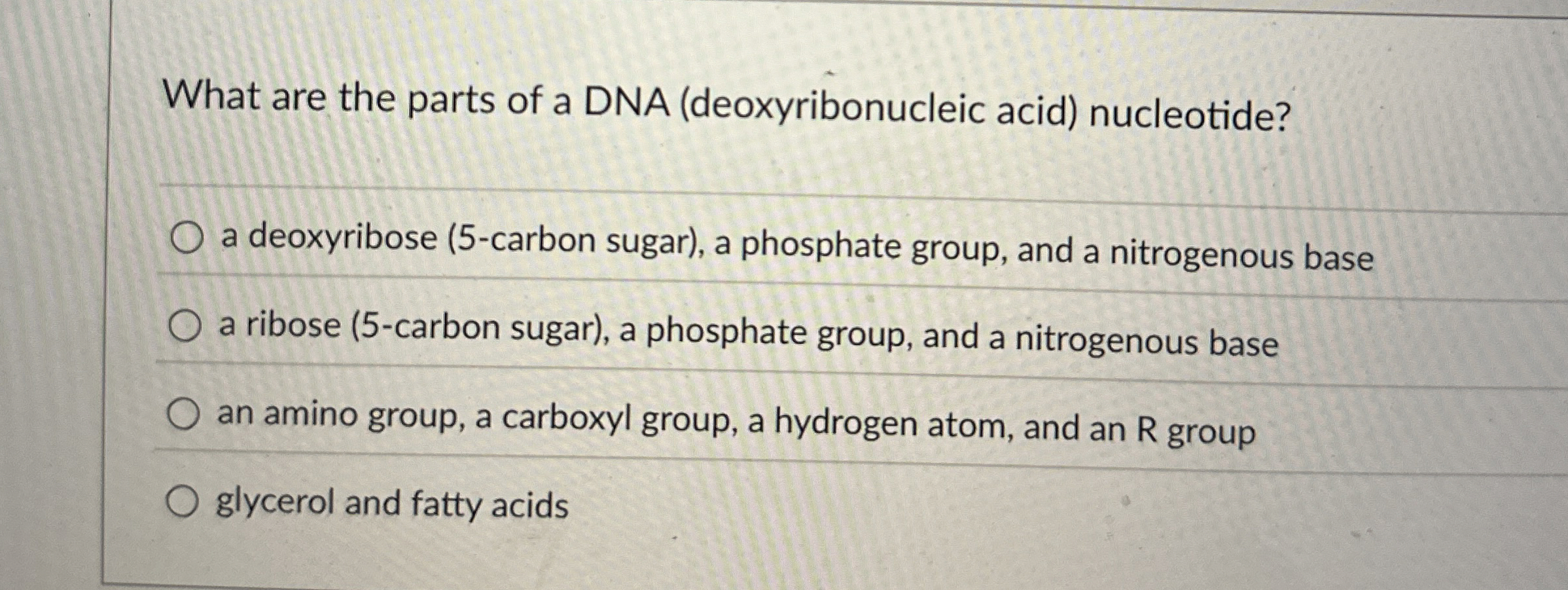Solved What are the parts of a DNA (deoxyribonucleic acid)